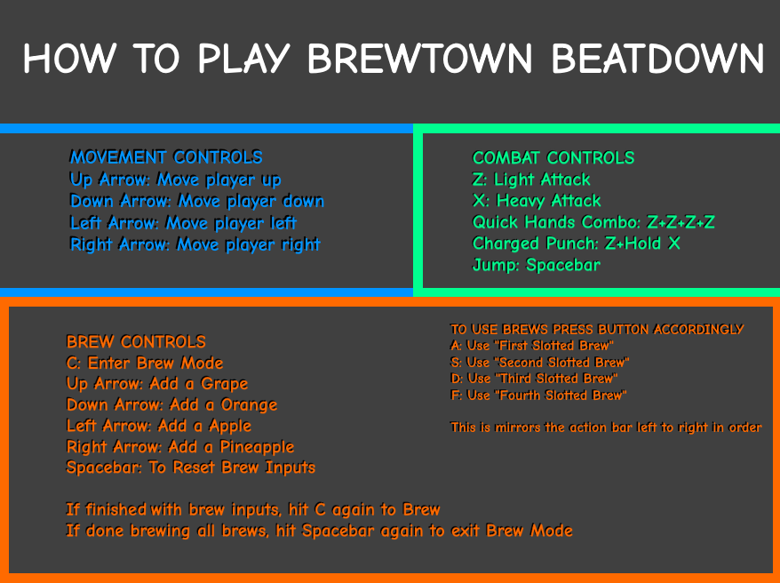 Really fun game! I love the funny fruit characters and how you blend 2d and 3d art all together. The beat em up style felt very familiar and easy to pick up. It was really cool to be able to brew on the go and create different potions to help get through the level.